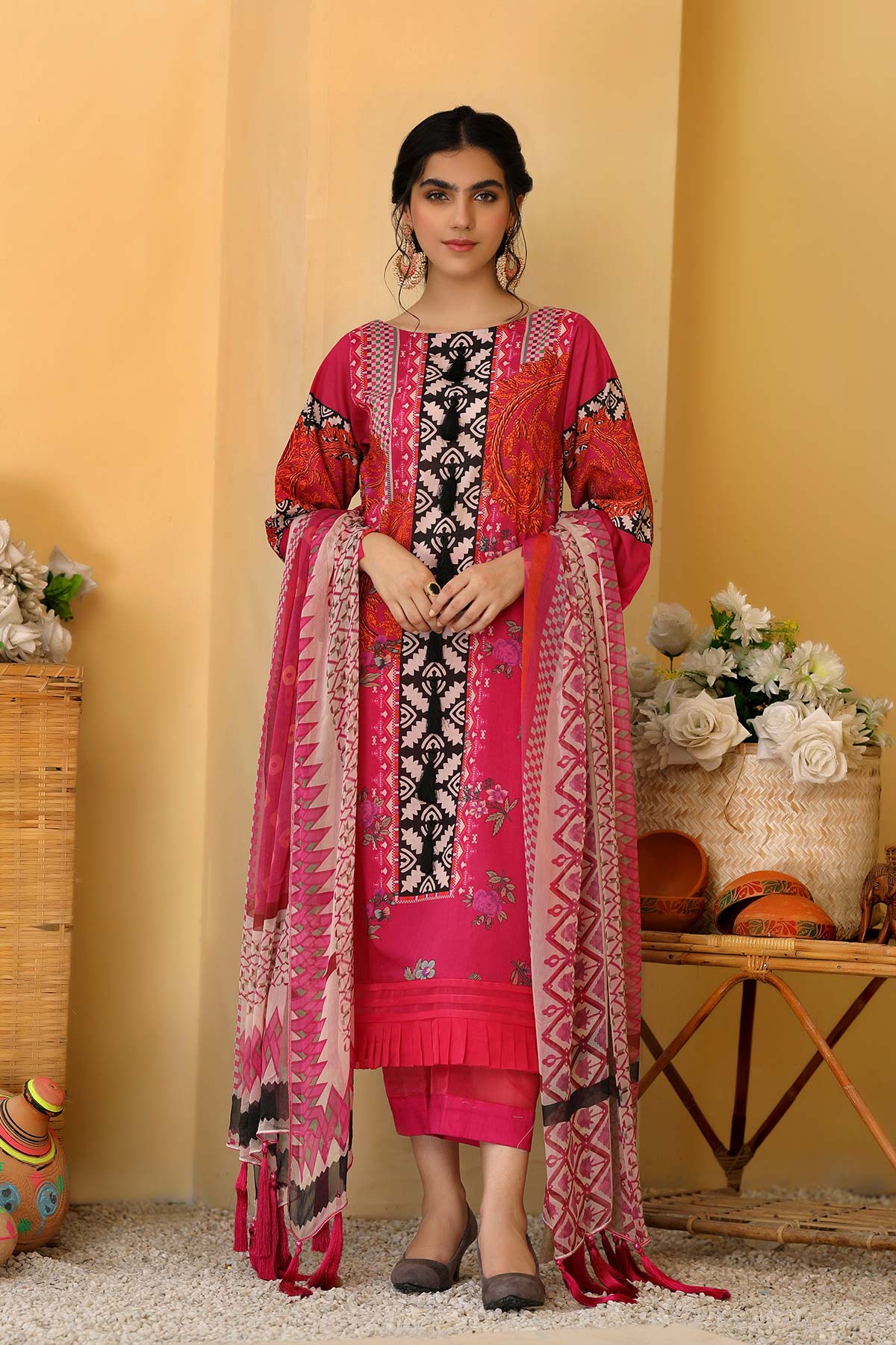 3-piece Unstitched Lawn with Print Chiffon Dupatta CP-35