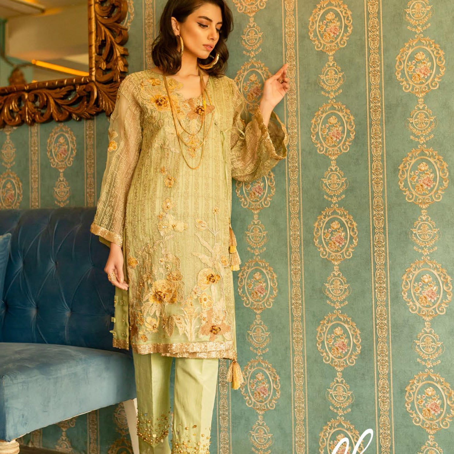 • Ready to wear net fabric shirt with attached resham lawn inner