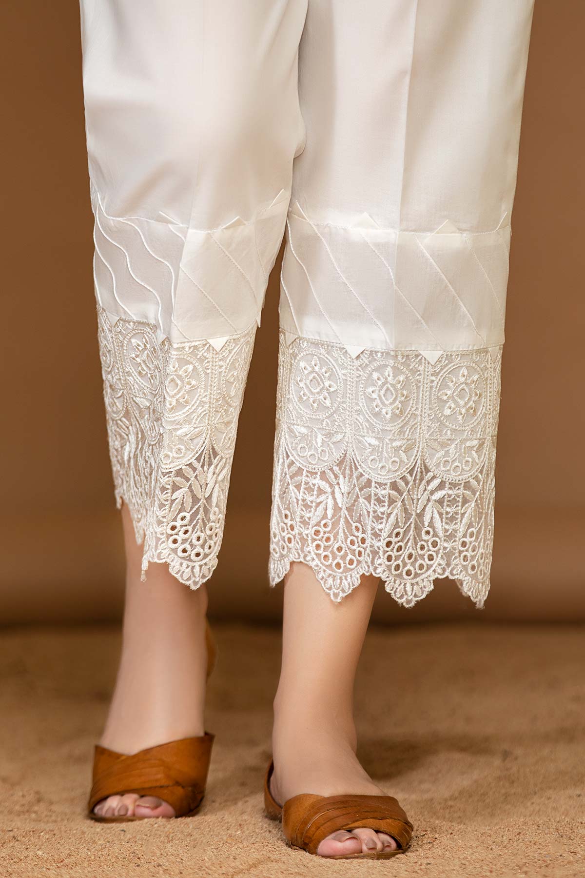 • Cotton straight trouser with stitching detail and Organza embroidered patch.