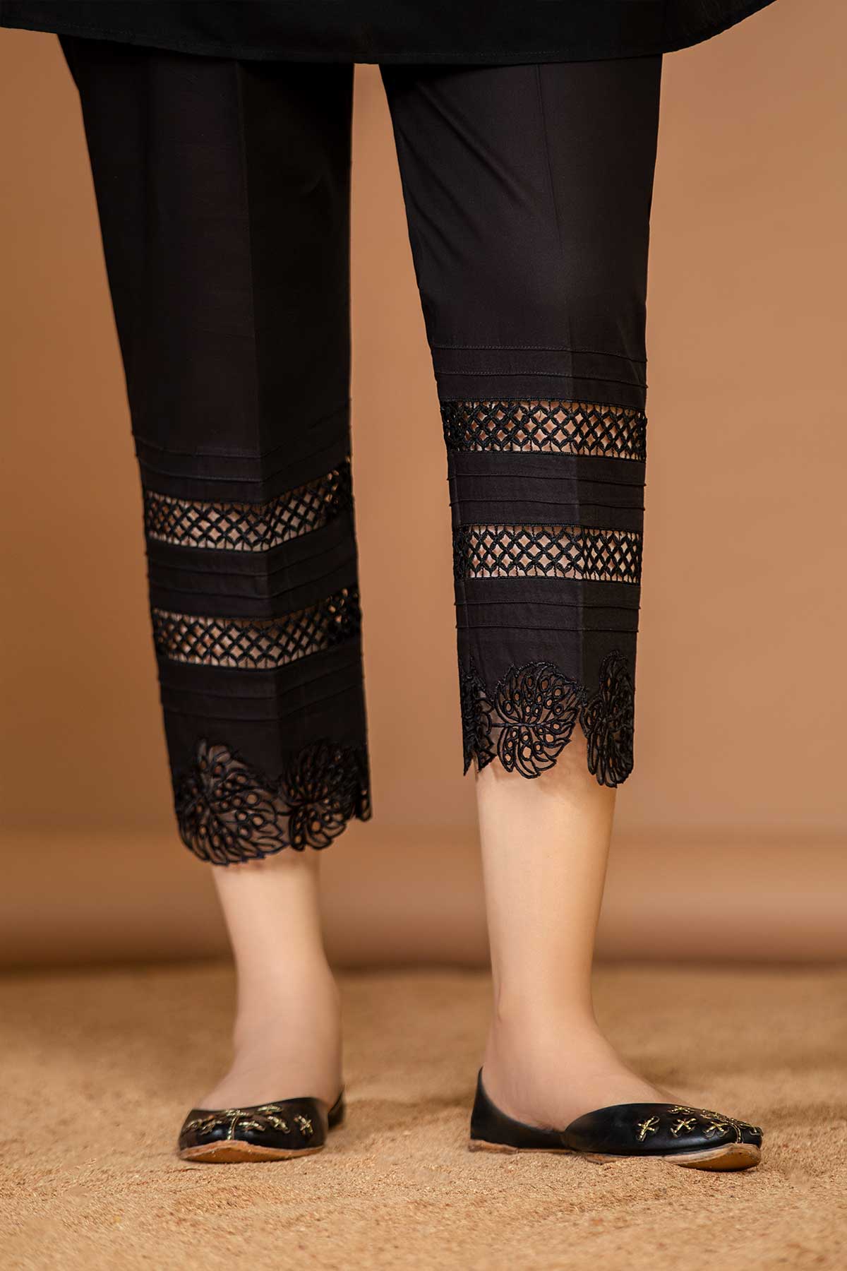 • Cotton straight trouser with Organza embroidered patch and lace details
