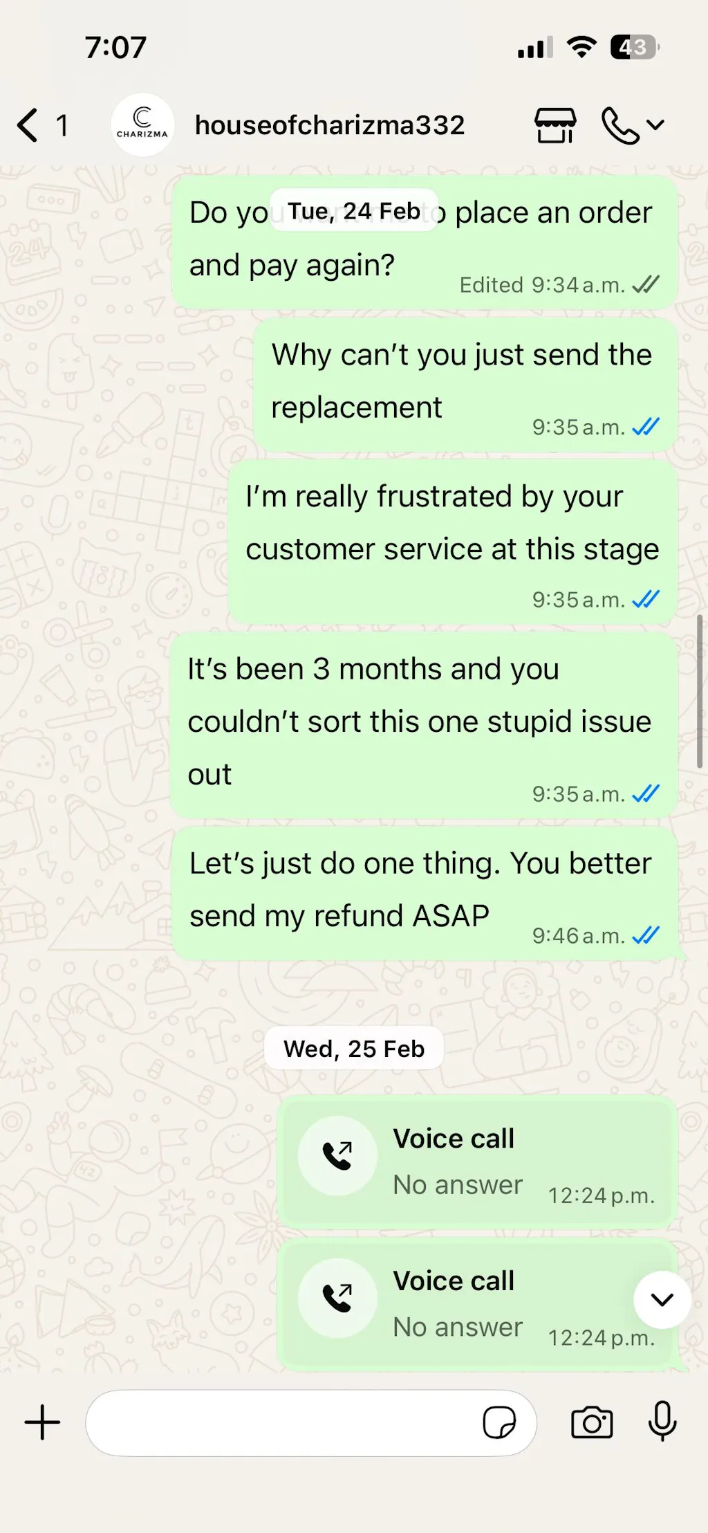 I ordered an outfit in November 2025, not delivered still waiting. I kept calling them texting them and finally by the end of December I was told that it’s out of stock congratulations. They asked me to choose a different article which I did. They never got back to me since. Haven’t generated a refund. Aren’t answering my messages my phone calls. What a shit show man hats off