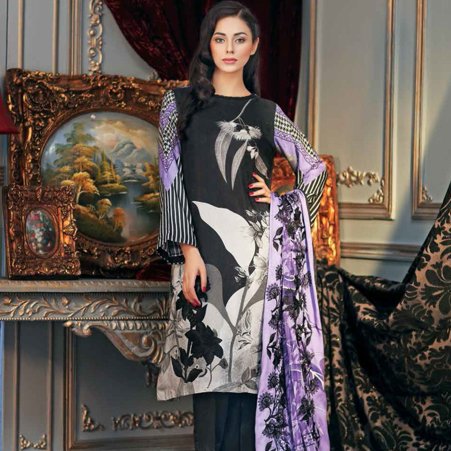• Emb Digital Print Staple Jacquard Shawl 2.50 Mtr