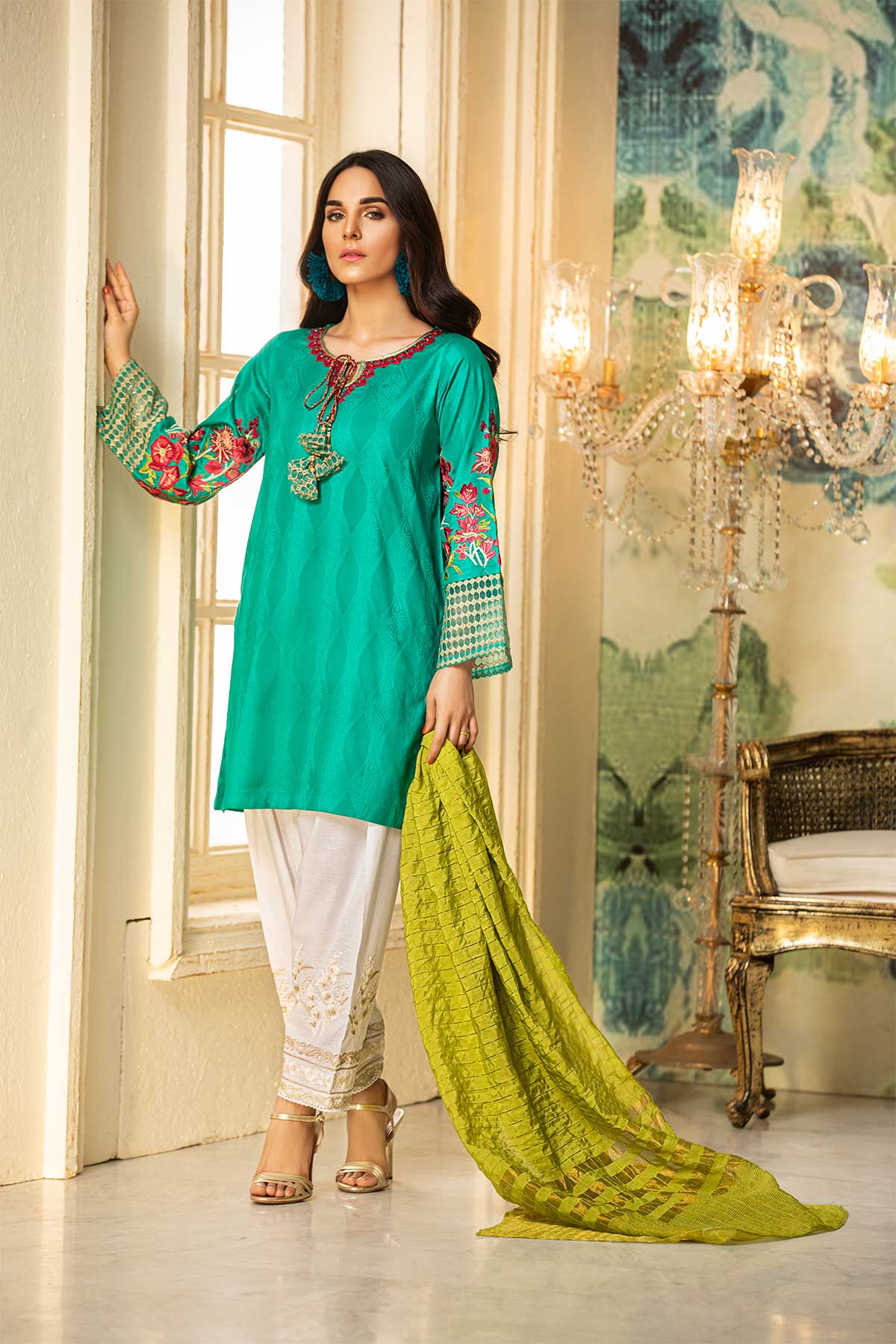 • Lawn brosha fabric embroidered front & sleeves