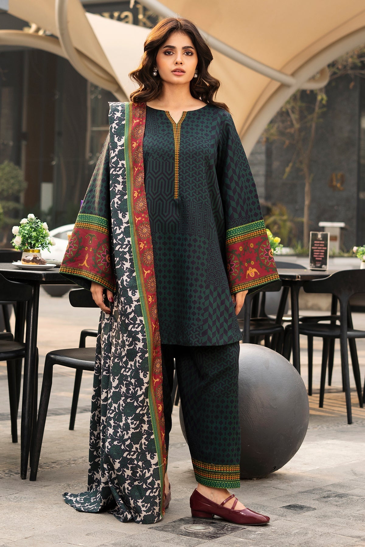 3pc printed set with a round neckline having a farshi shalwar and digital printed duppata.