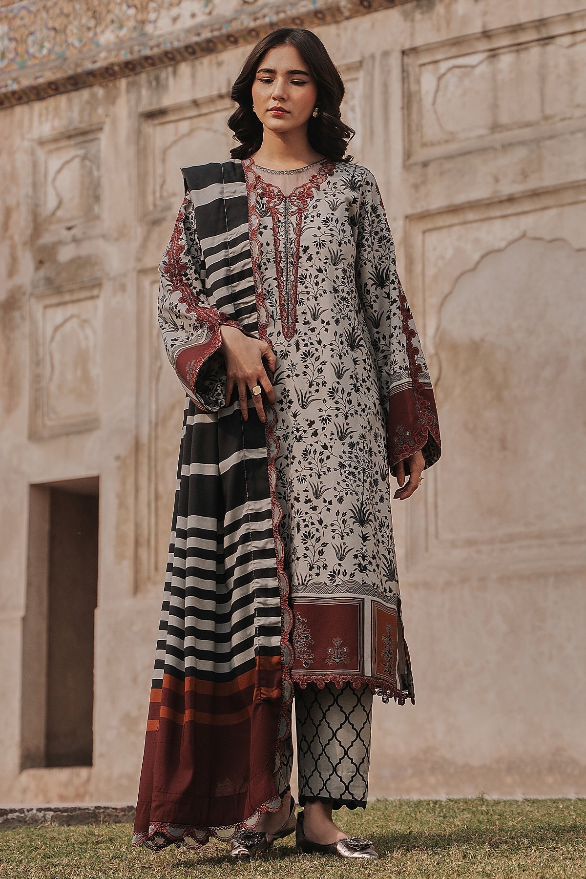 Embroidered Printed Staple Shawl 2.50 Meter