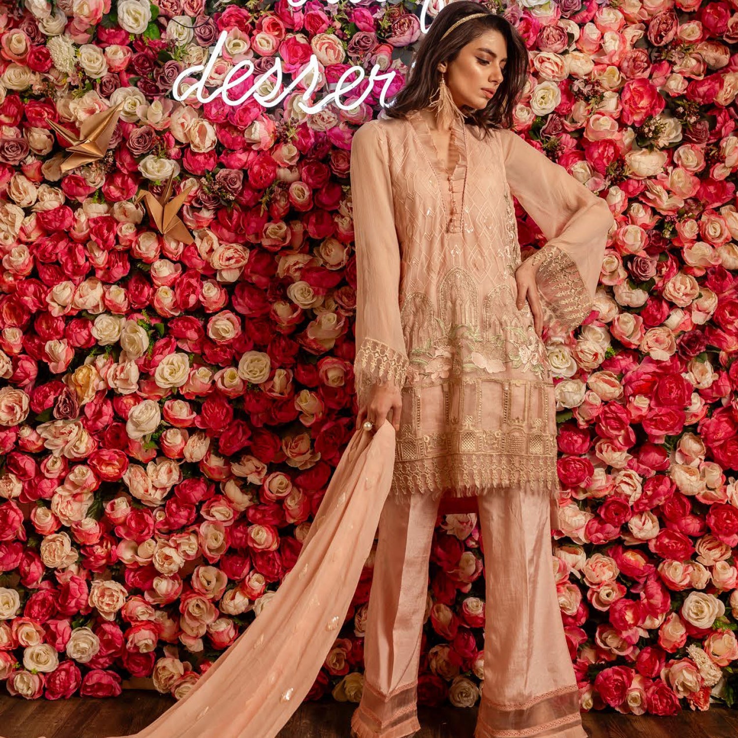 • Ready to wear bamber chiffon fabric shirt with attached resham lawn inner