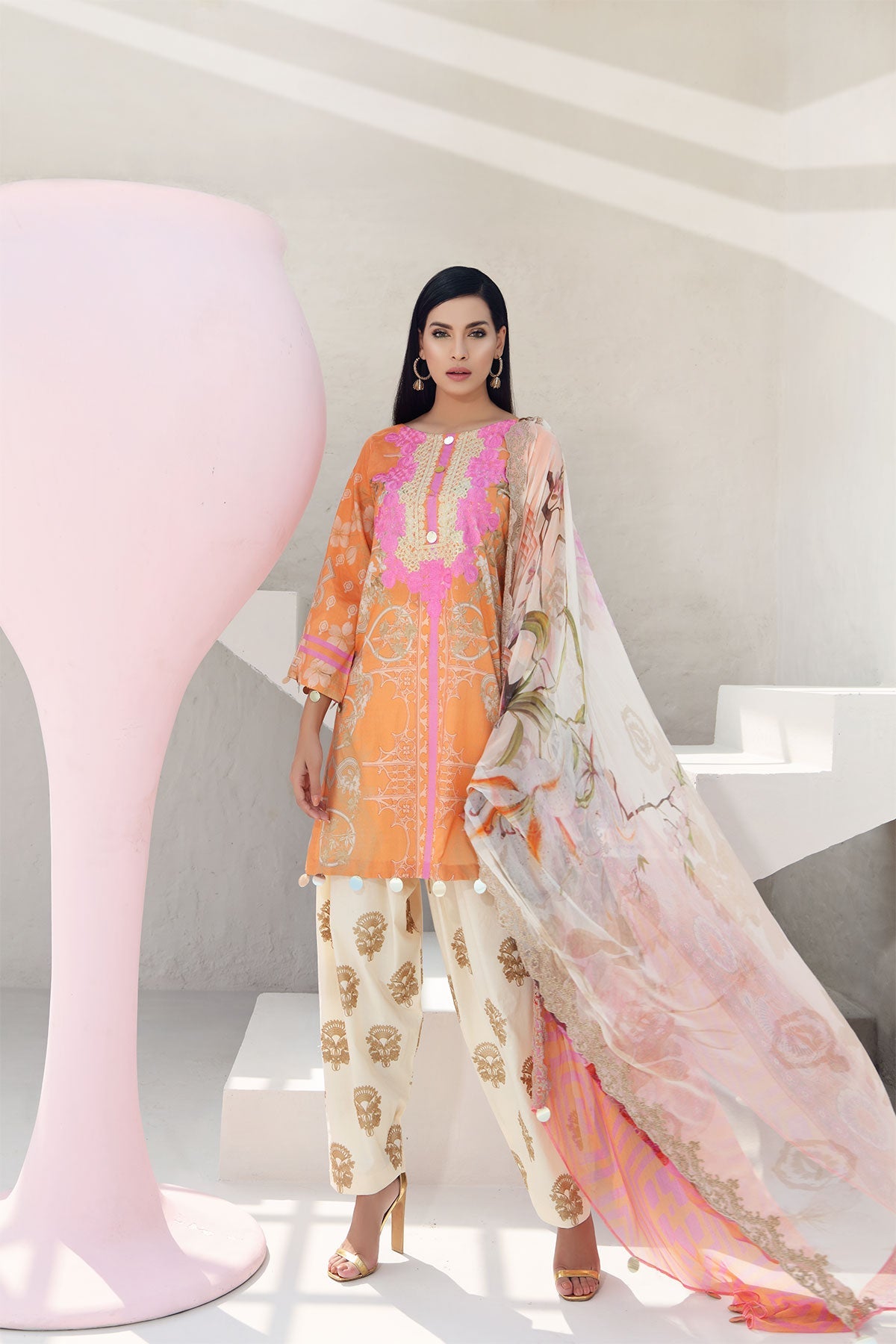 • Embroidered digital print chiffon dupatta 250 Mtr