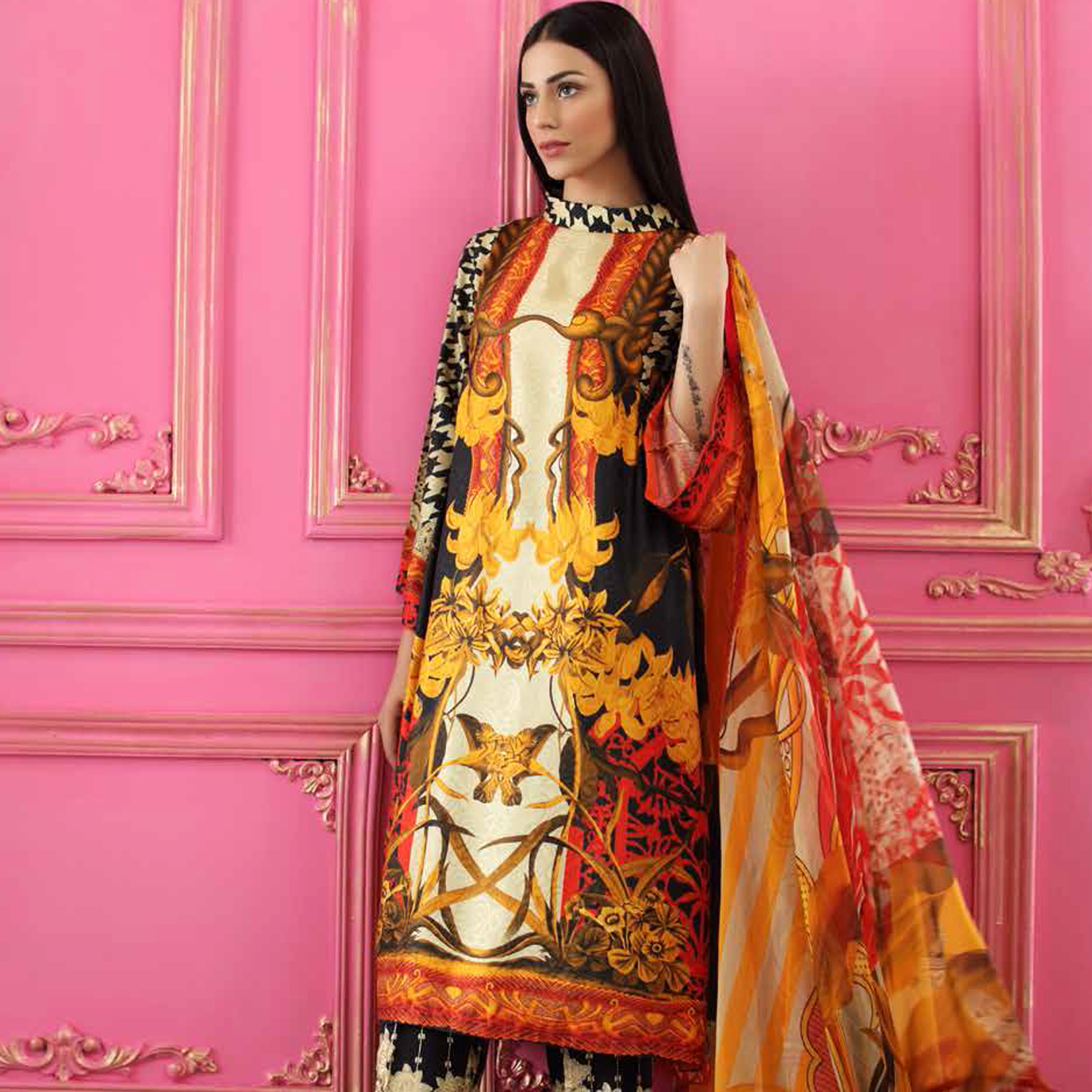 • Front + Back + Sleeves Viscose Print 3.25 Mtr