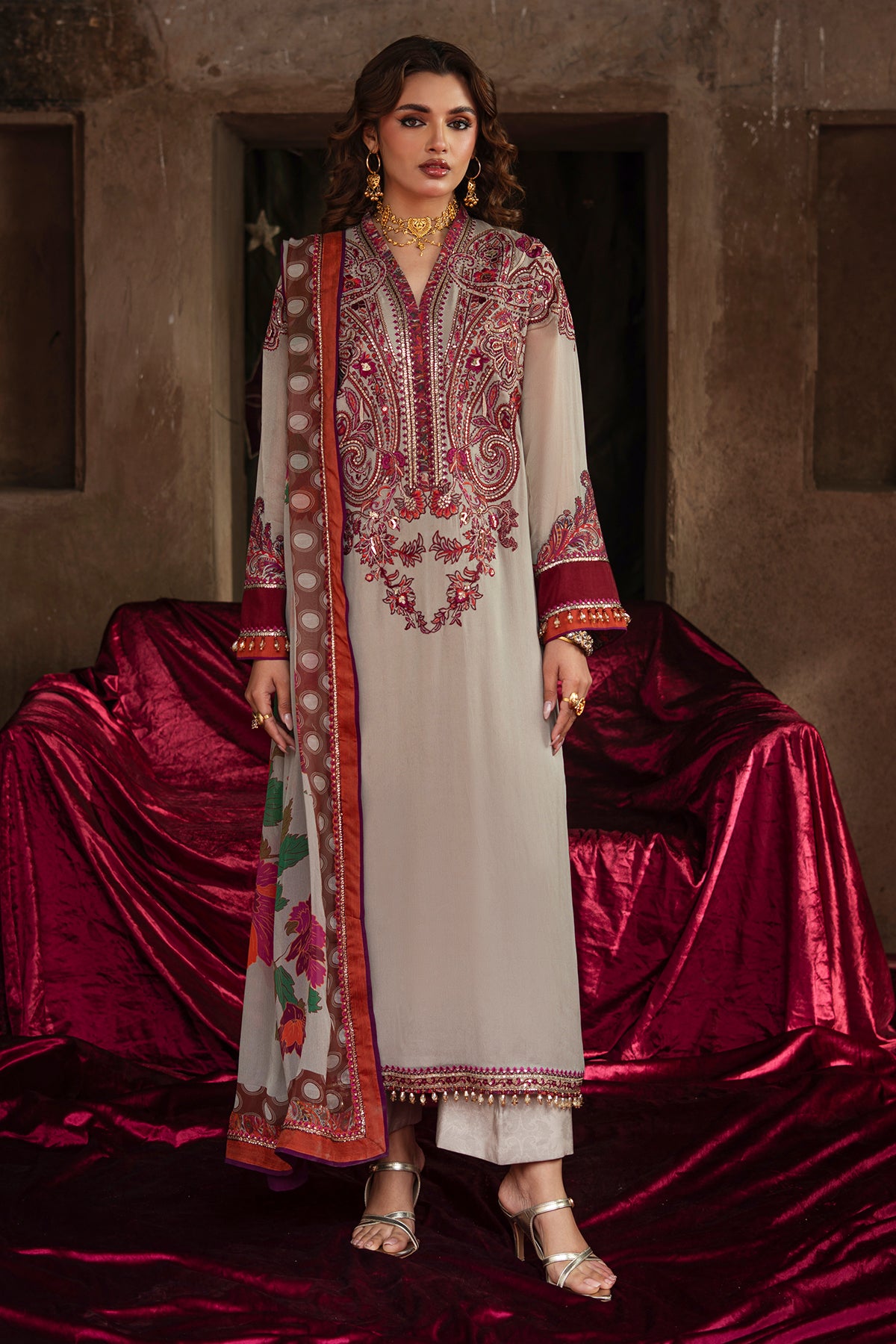 Embroidered Sleeves & Chok & Back Neck and Dupatta Patti 16 Meter