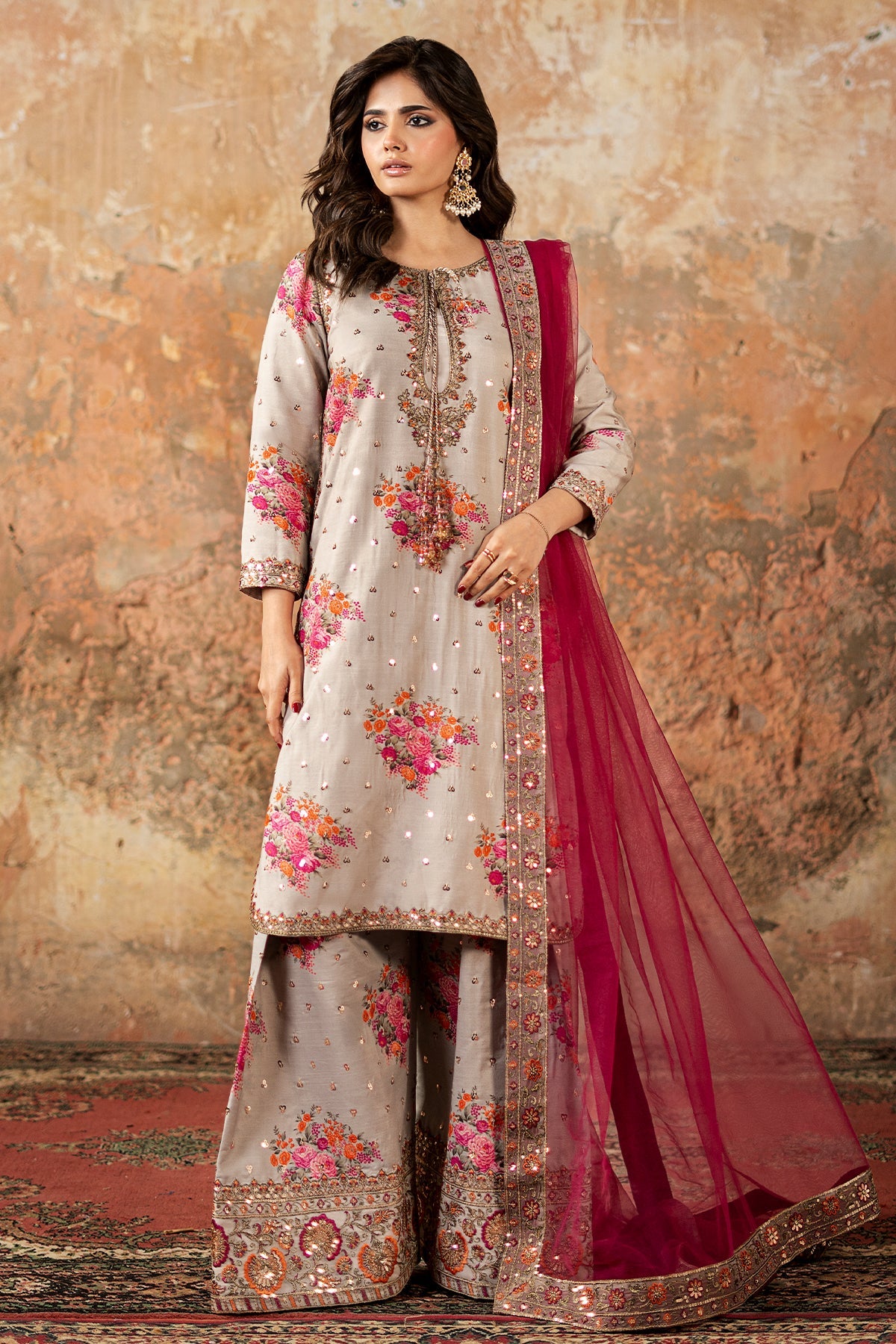 Embroidered Printed Raw Silk Front & Back and Sleeves 3 Meter
